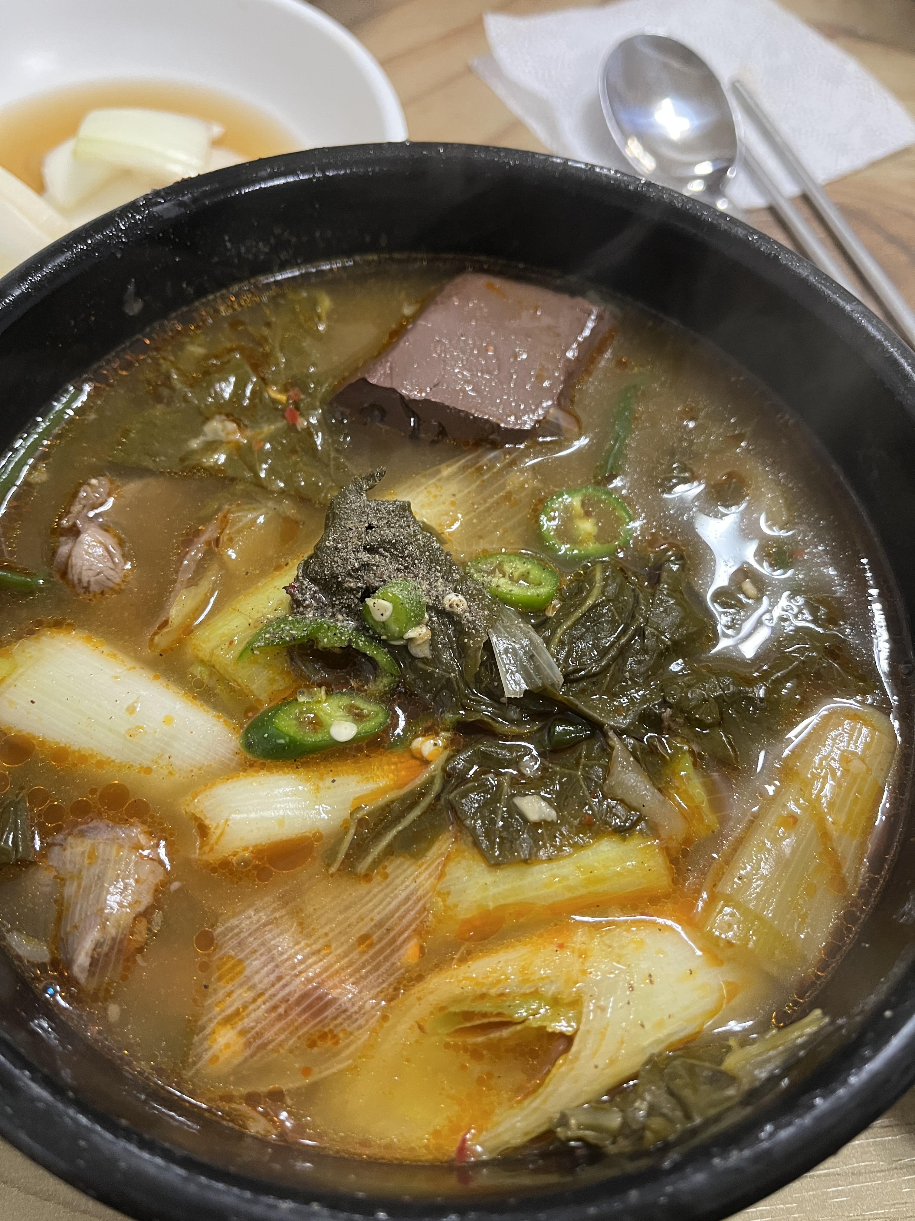 기본 선지국밥과 같으나 특이한 점은 대파를 크게 썰어서 넣었다는 점입니다.